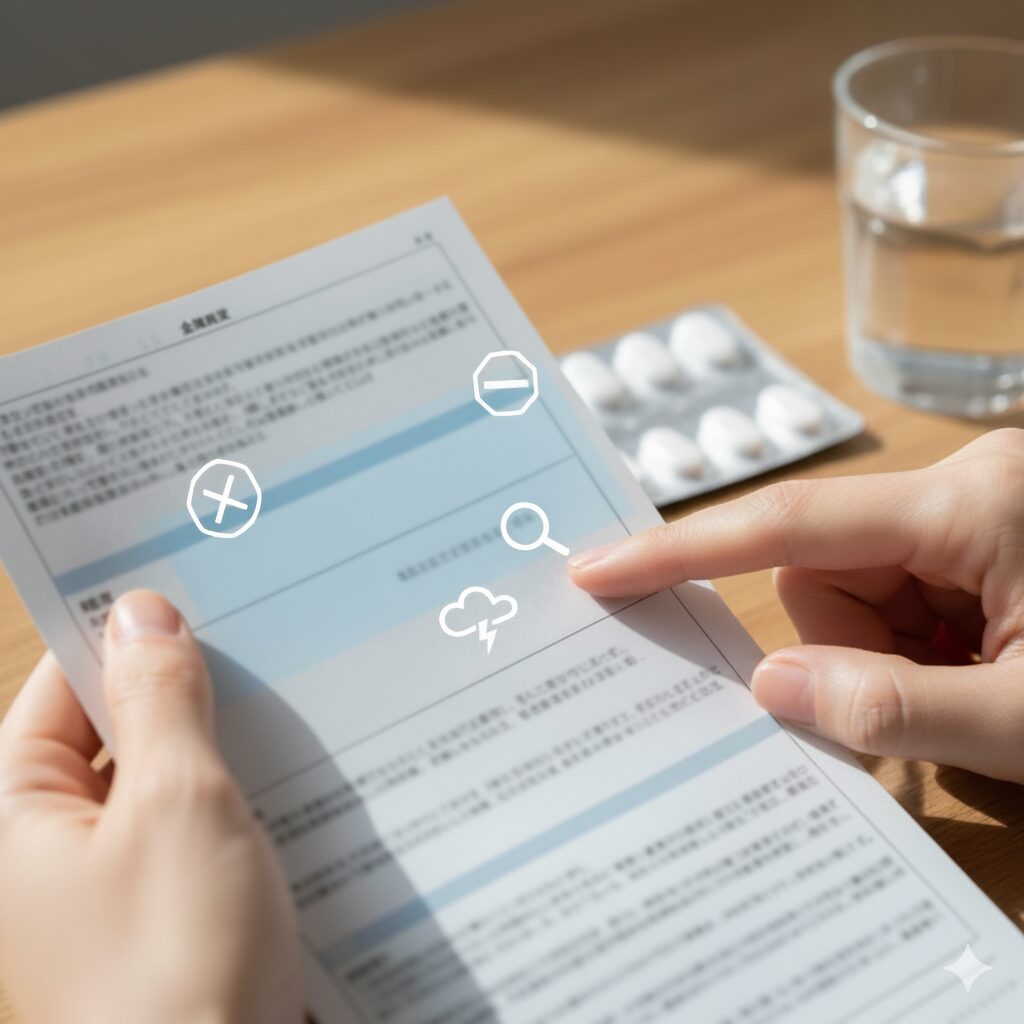 | 「他の薬を服用している人は相談すること」 | 相互作用(飲み合わせ)への注意喚起。 | サプリや市販薬も含め、事前に申告。 |
