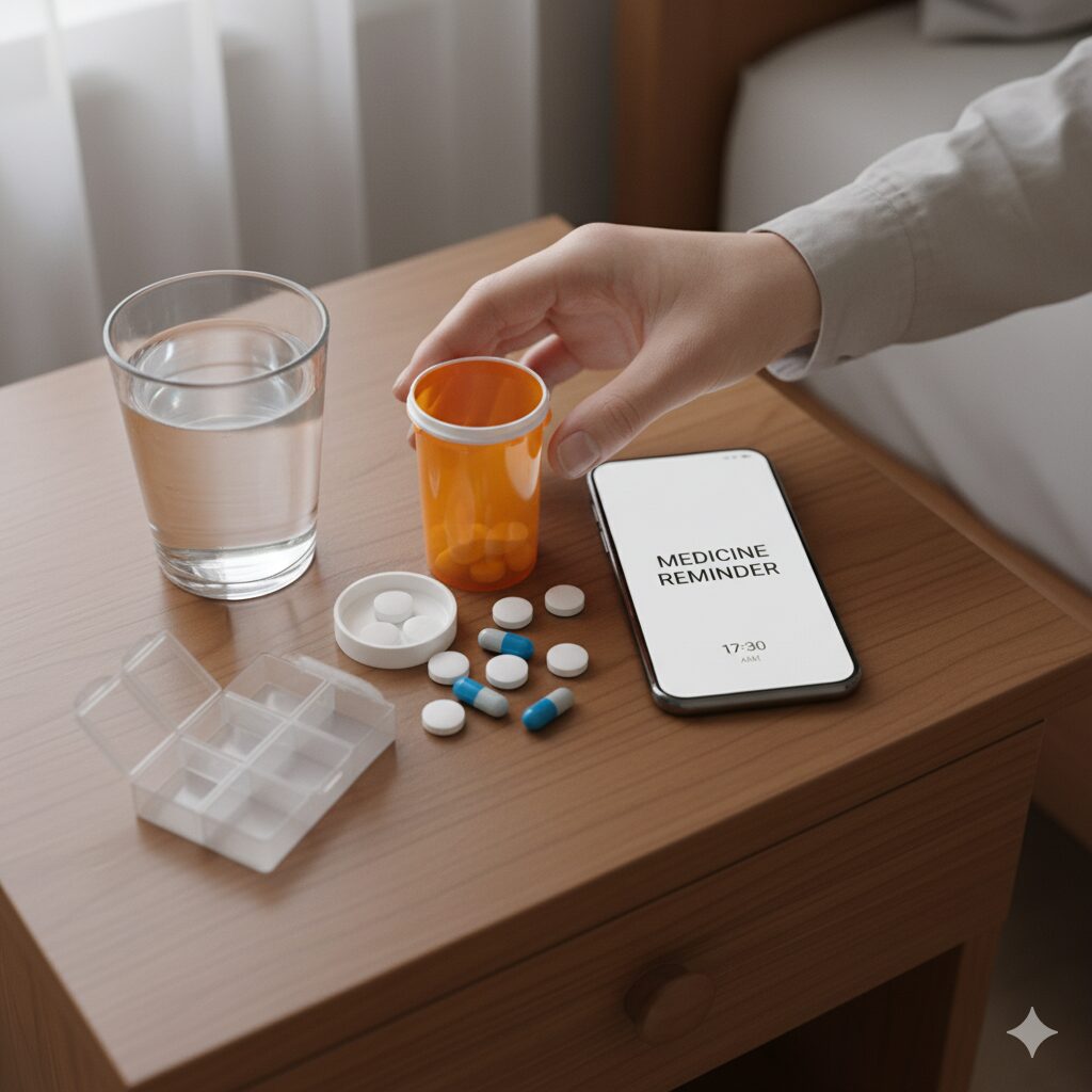 薬の服用時間を単独で覚えるより、生活のリズムに組み込むことで忘れにくくなります。